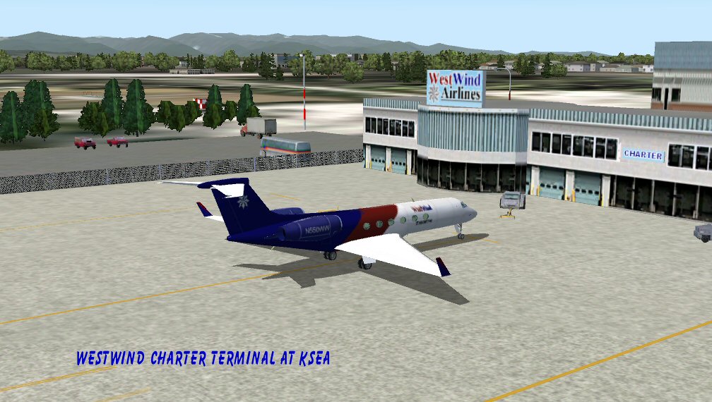 | Details | This scenery contains the WestWind Charter terminal and ramp for KSEA. Scenery includes a custom terminal building, WestWind coded parking, ramp lighting and ground support equipment. The parking spots are labeled 'Gates W1 - W6' Be sure to read the 'readme' file for FSX setup instructions. |